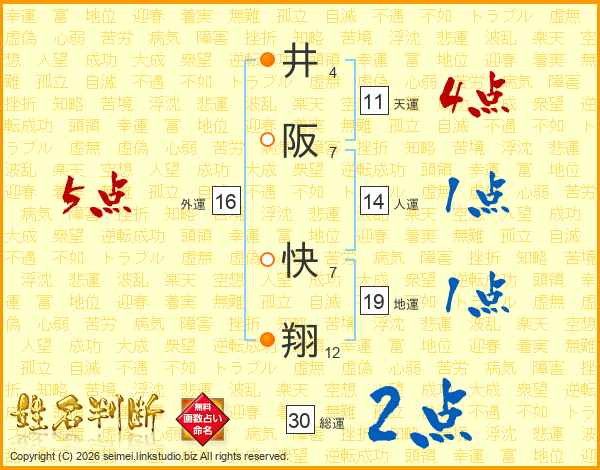 井阪快翔さんの総運は30画の2点!