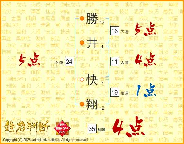 勝(12画)井(4画) 快(7画)翔(12画)