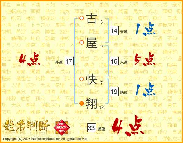 古屋快翔さんの総運は33画の4点!
