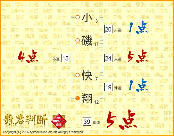 小磯快翔さんの総運は39画の5点!