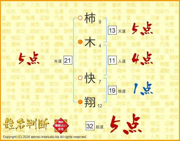 柿(9画)木(4画) 快(7画)翔(12画)