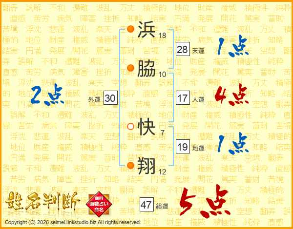 浜(18画)脇(10画) 快(7画)翔(12画)
