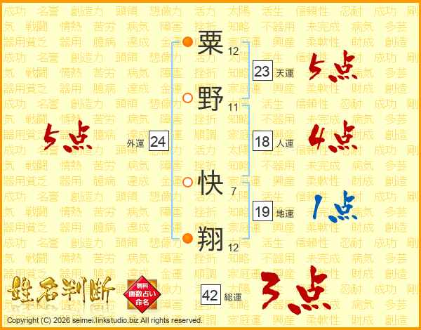 粟野快翔さんの天運は23画の5点!