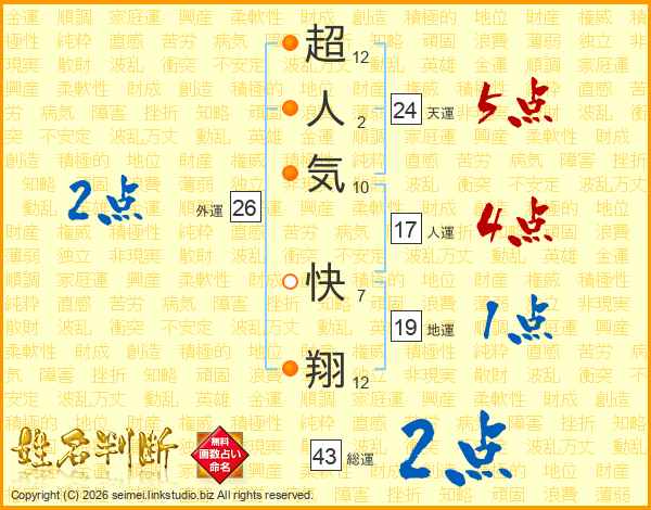 超人気快翔さんの総運は43画の2点!