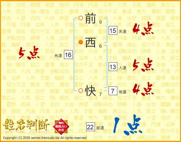 前西快さんの天運は15画の4点!