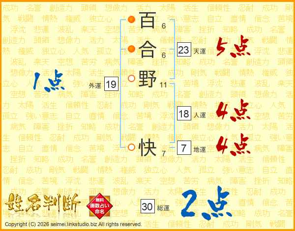 百合野快さんの総運は30画の2点!