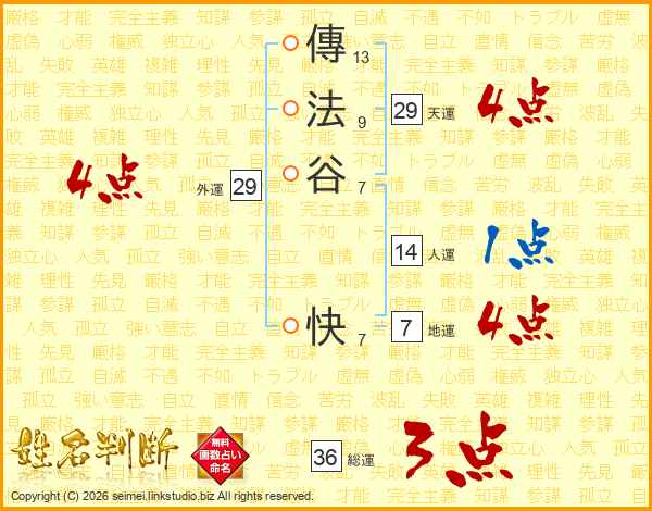 傳法谷快さんの天運は29画の4点!