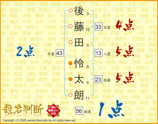 後藤田怜太朗さんの天運は33画の4点!