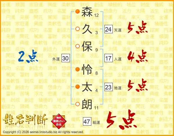 森久保怜太朗さんの総運は47画の5点!