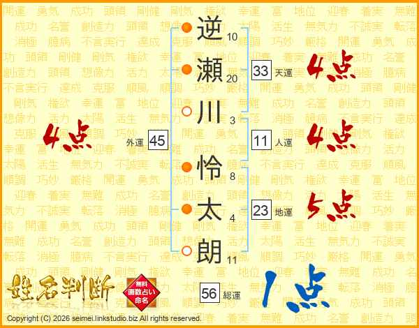 逆瀬川怜太朗さんの天運は33画の4点!