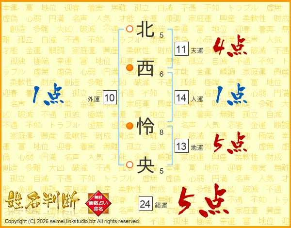 北西怜央さんの総運は24画の5点!