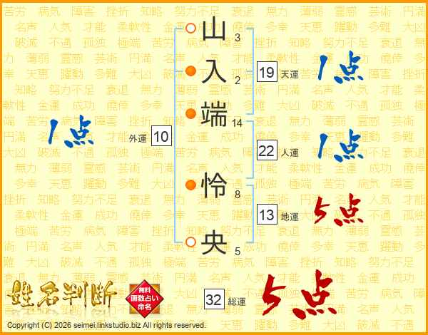 山入端怜央さんの総運は32画の5点!
