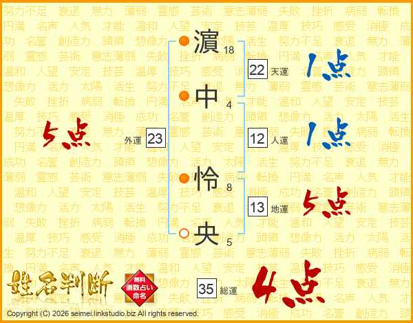 濵中怜央さんの地運は13画の5点!