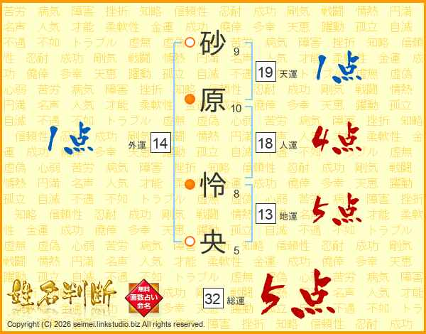 砂原怜央さんの総運は32画の5点!