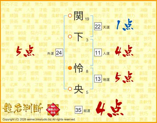 関下怜央さんの総運は35画の4点!