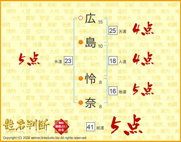 広島怜奈さんの総運は41画の5点!