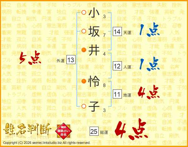 小坂井怜子さんの天運は14画の1点!