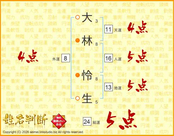大林怜生さんの総運は24画の5点!