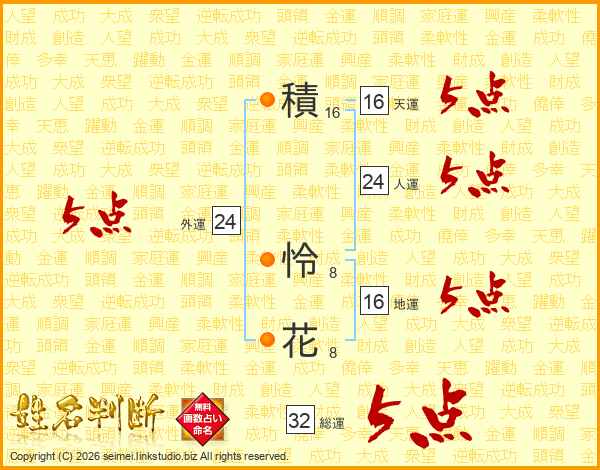 積怜花さんの総運は32画の5点!