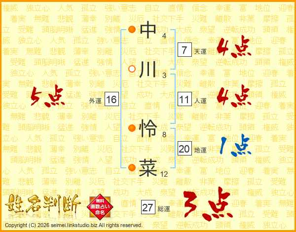 中川怜菜さんの人運は11画の4点!
