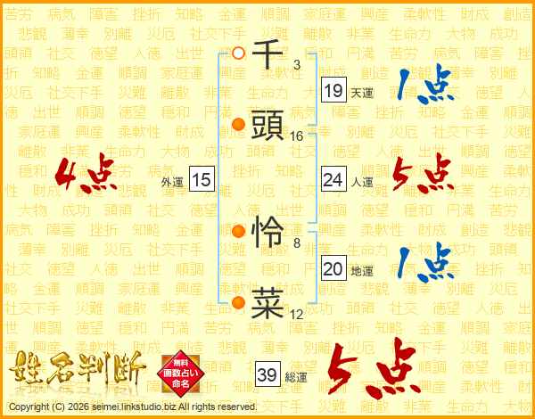 千頭怜菜さんの総運は39画の5点!