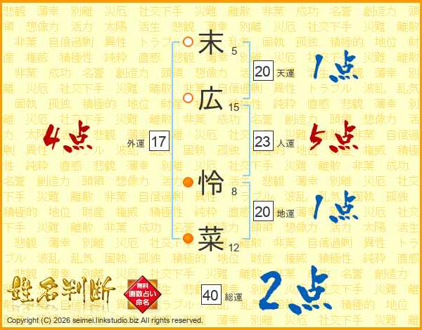 末広怜菜さんの総運は40画の2点!