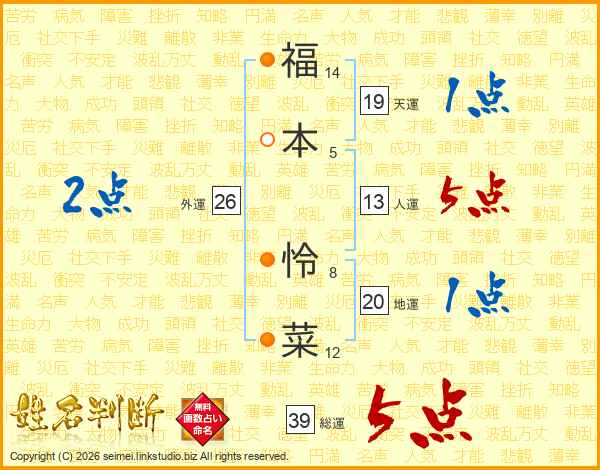 福本怜菜さんの総運は39画の5点!
