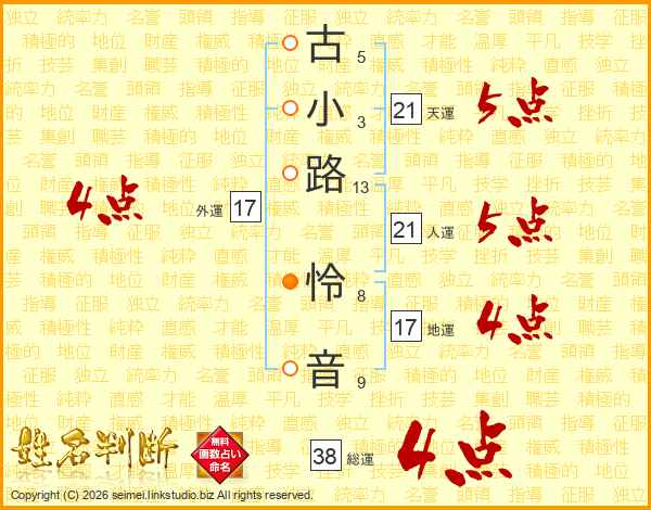 古小路怜音さんの天運は21画の5点!