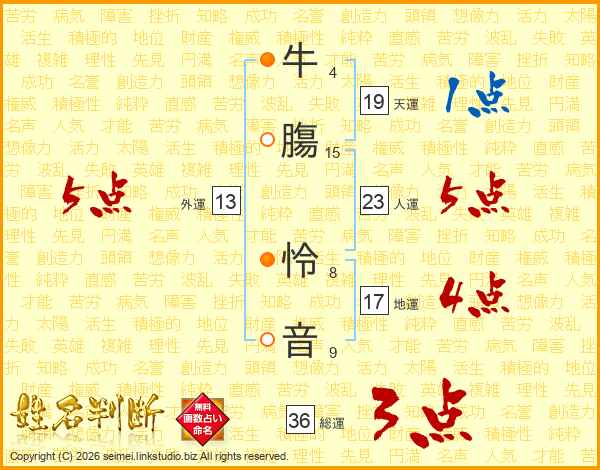 牛(4画)膓(15画) 怜(8画)音(9画)