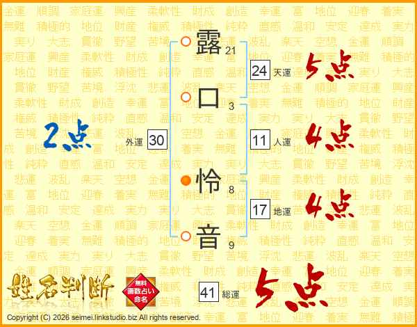露口怜音さんの総運は41画の5点!