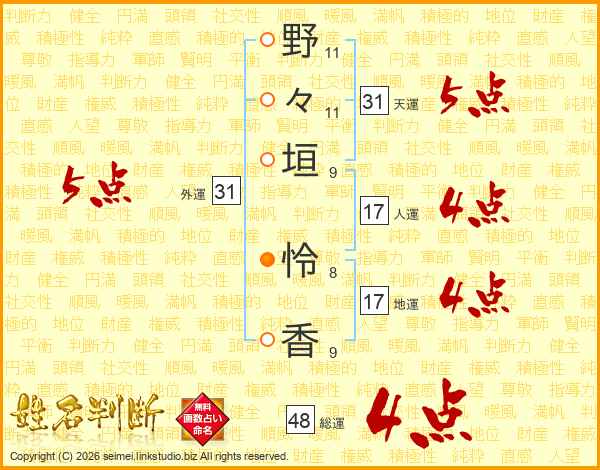 野々垣怜香さんの天運は31画の5点!