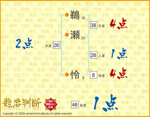 鵜瀬怜さんの総運は46画の1点!