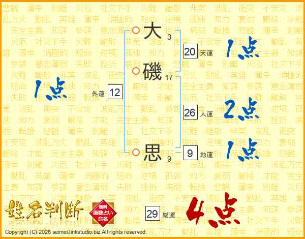 大磯思さんの人運は26画の2点!