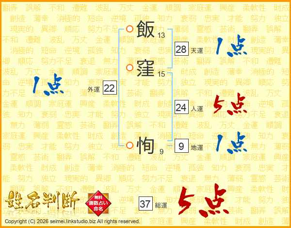 飯窪恂さんの総運は37画の5点!