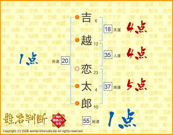 吉越恋太郎さんの総運は55画の1点!