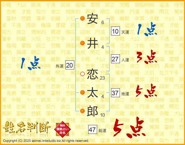 安(6画)井(4画) 恋(23画)太(4画)郎(10画)