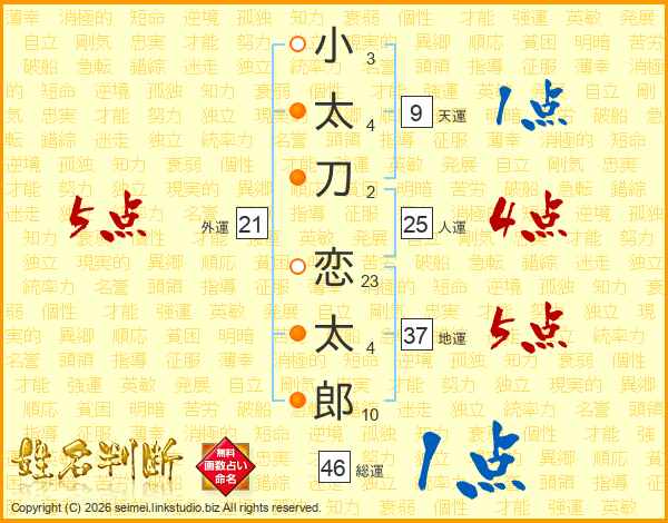 小太刀恋太郎さんの総運は46画の1点!