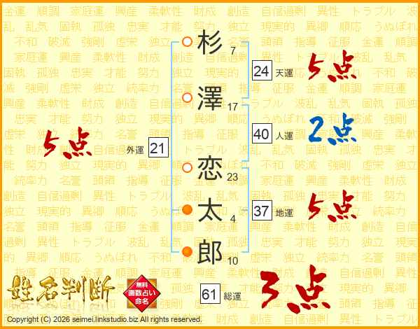 杉澤恋太郎さんの人運は40画の2点!