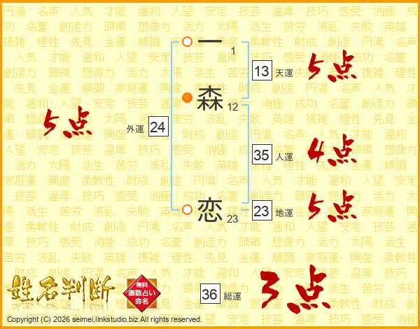 一森恋さんの天運は13画の5点!