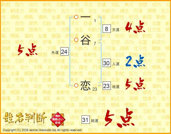一谷恋さんの総運は31画の5点!