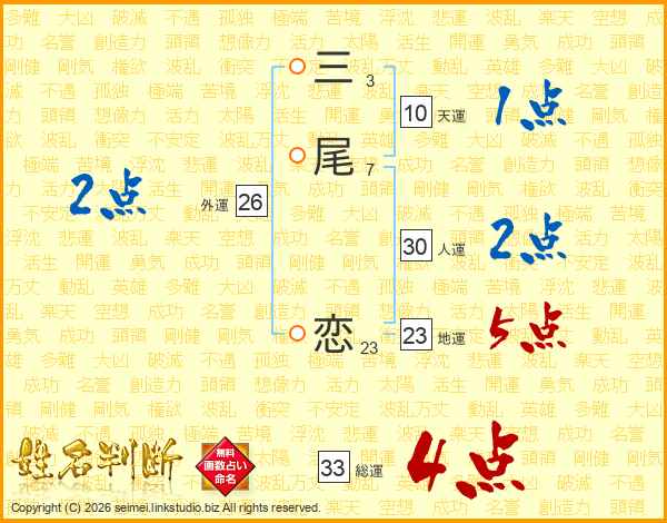 三尾恋さんの総運は33画の4点!
