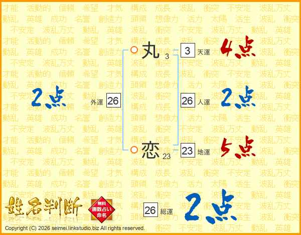 丸恋さんの総運は26画の2点!