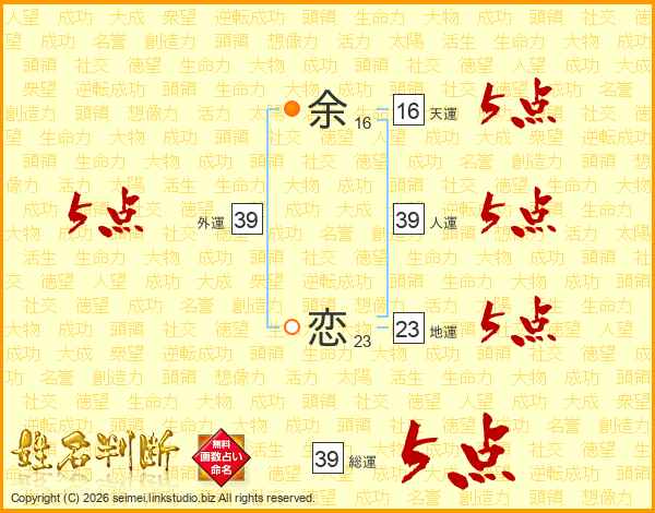 余恋さんの総運は39画の5点!