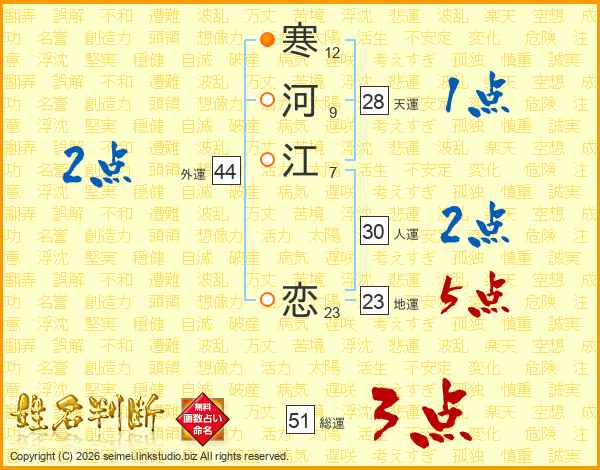 寒河江恋さんの総運は51画の3点!