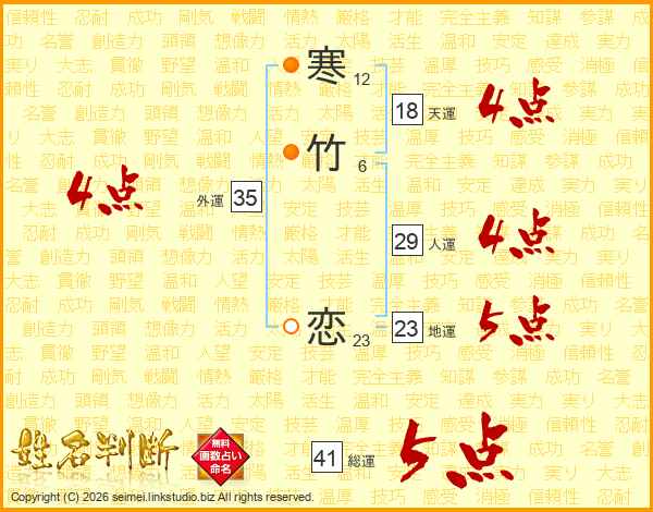 寒竹恋さんの総運は41画の5点!