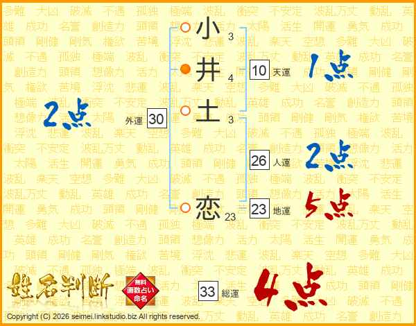 小井土恋さんの総運は33画の4点!