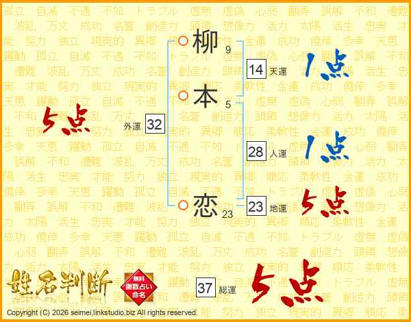 柳本恋さんの総運は37画の5点!