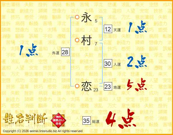 永村恋さんの総運は35画の4点!
