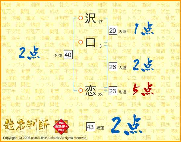 沢(17画)口(3画) 恋(23画)