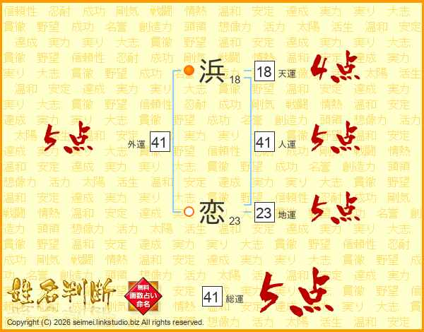 浜恋さんの総運は41画の5点